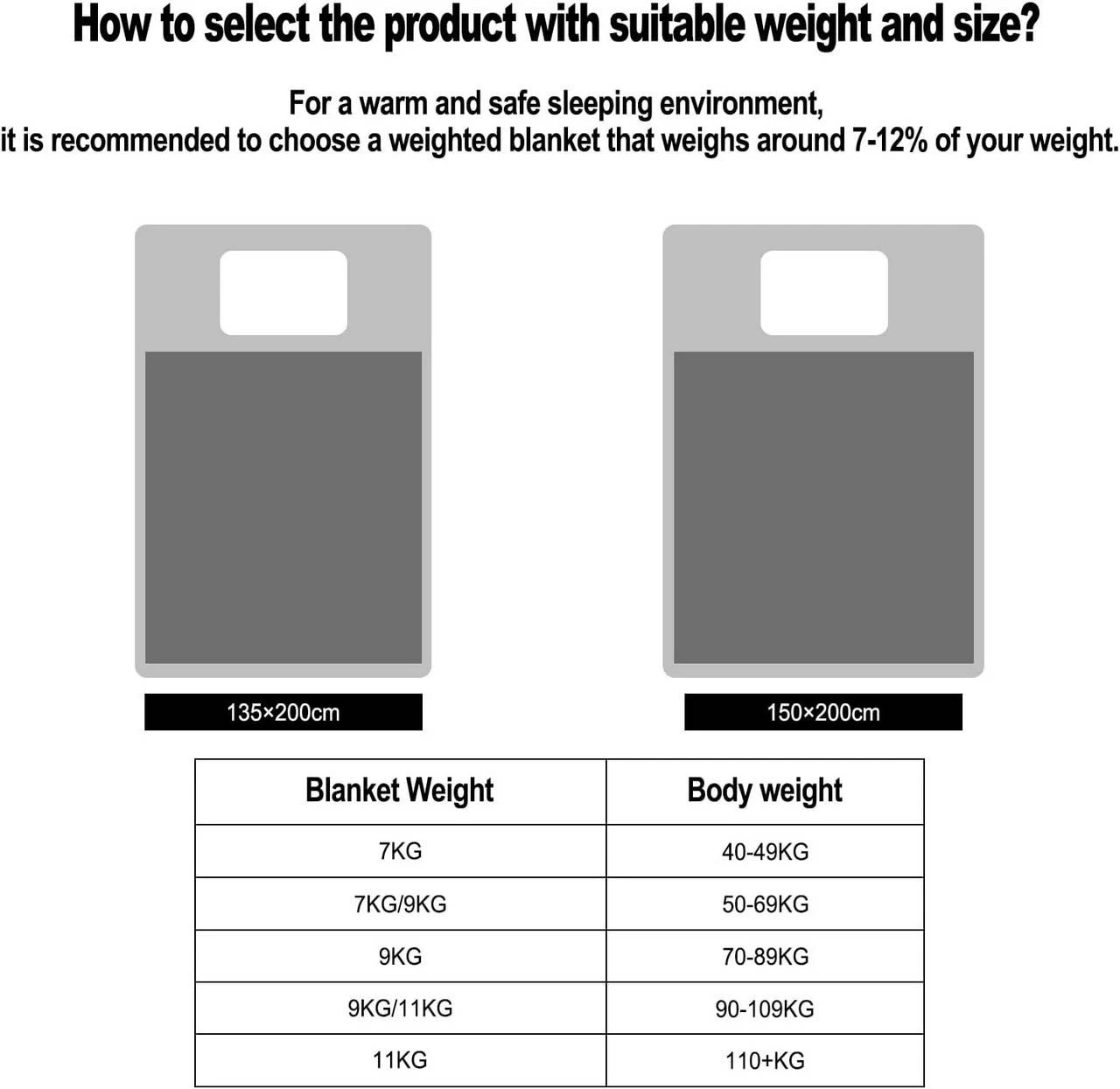 - MEHR AUSWAHL: 3 Gewichte und 2 Größen sind optional erhältlich. Empfohlenes Deckegewicht: 8% bis 12% Ihres Körpergewichts. Für ersten Gebrauch können Sie eine leichtere Decke wählen. Es kann 3 bis 5 Tage dauern, bis Sie sich an das Gewicht gewöhnen.