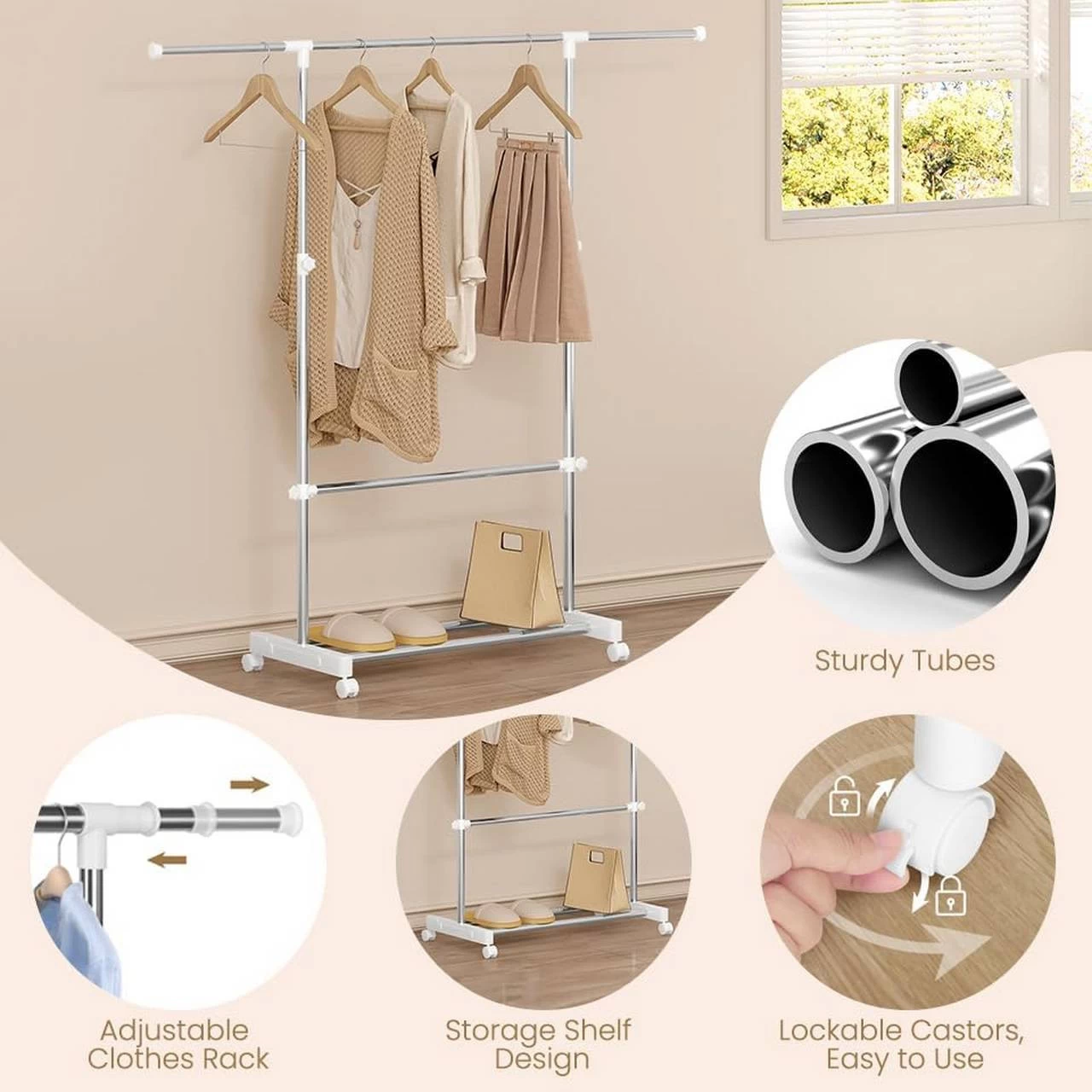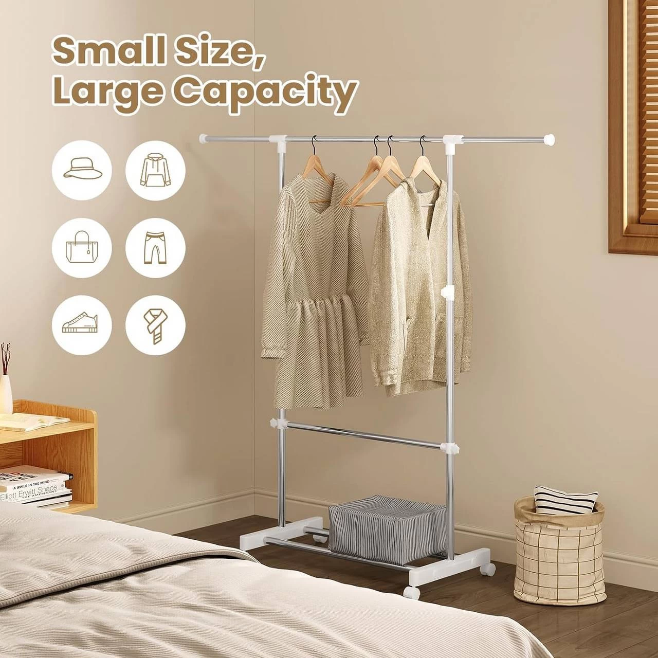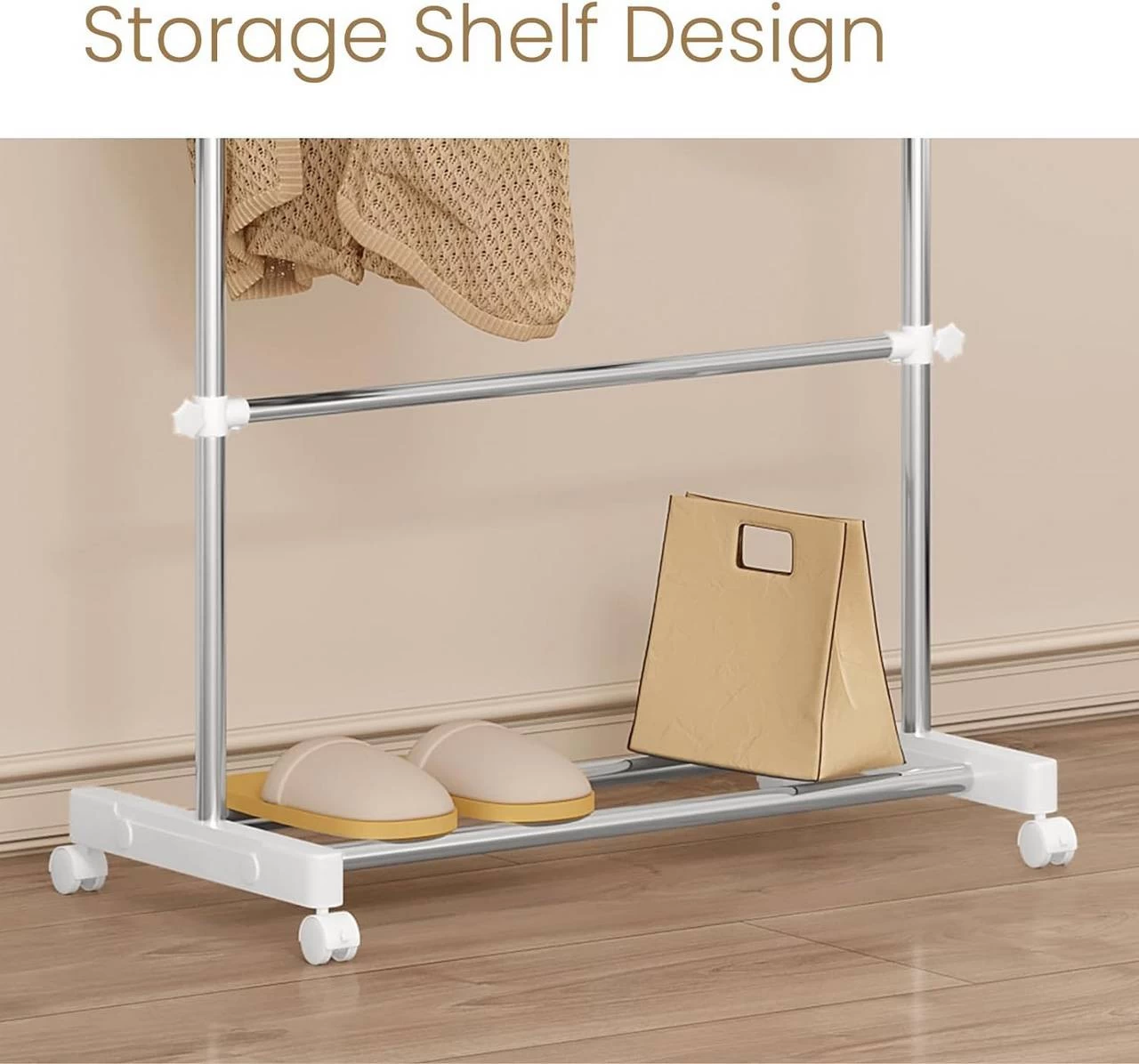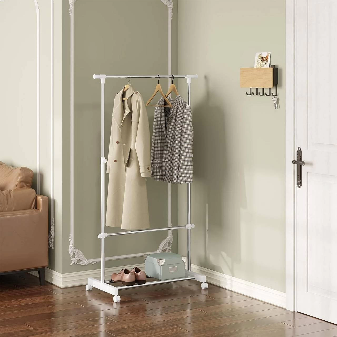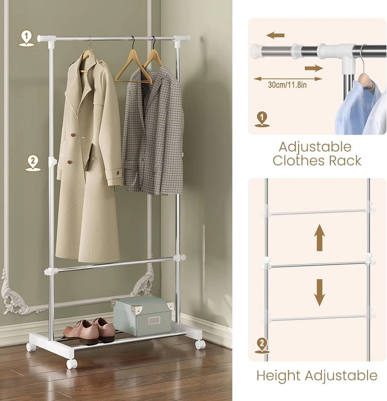 - TRAGBAR & VIELSEITIG: Dank seines geringen Gewichts und der leichtgängigen Bewegung ist der Kleiderständer auf Rollen tragbar und kann an vielen Orten verwendet werden, z. B. in Garderobe, Waschküche, Schlafzimmer, Wohnzimmer, Flur, auf Balkon usw.
