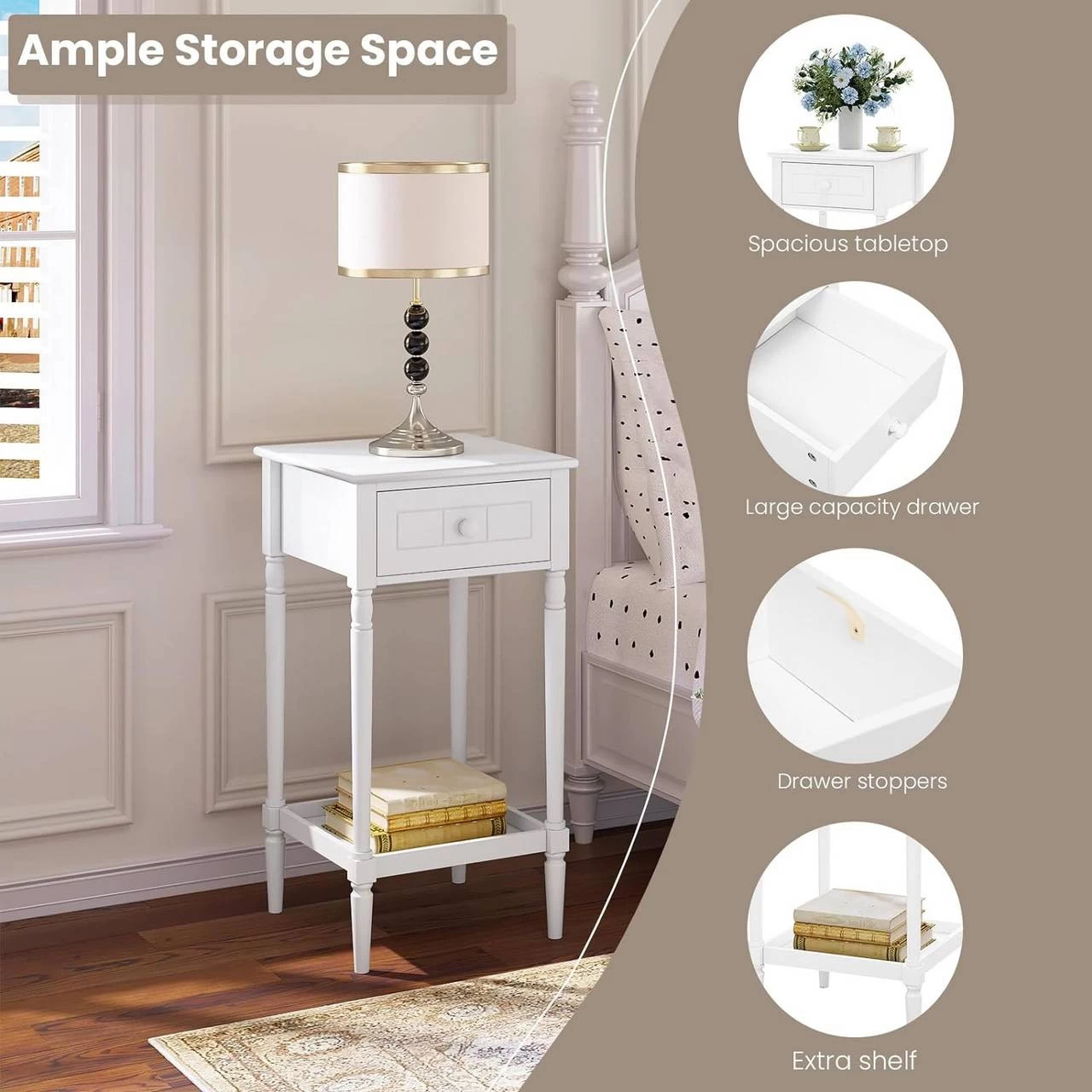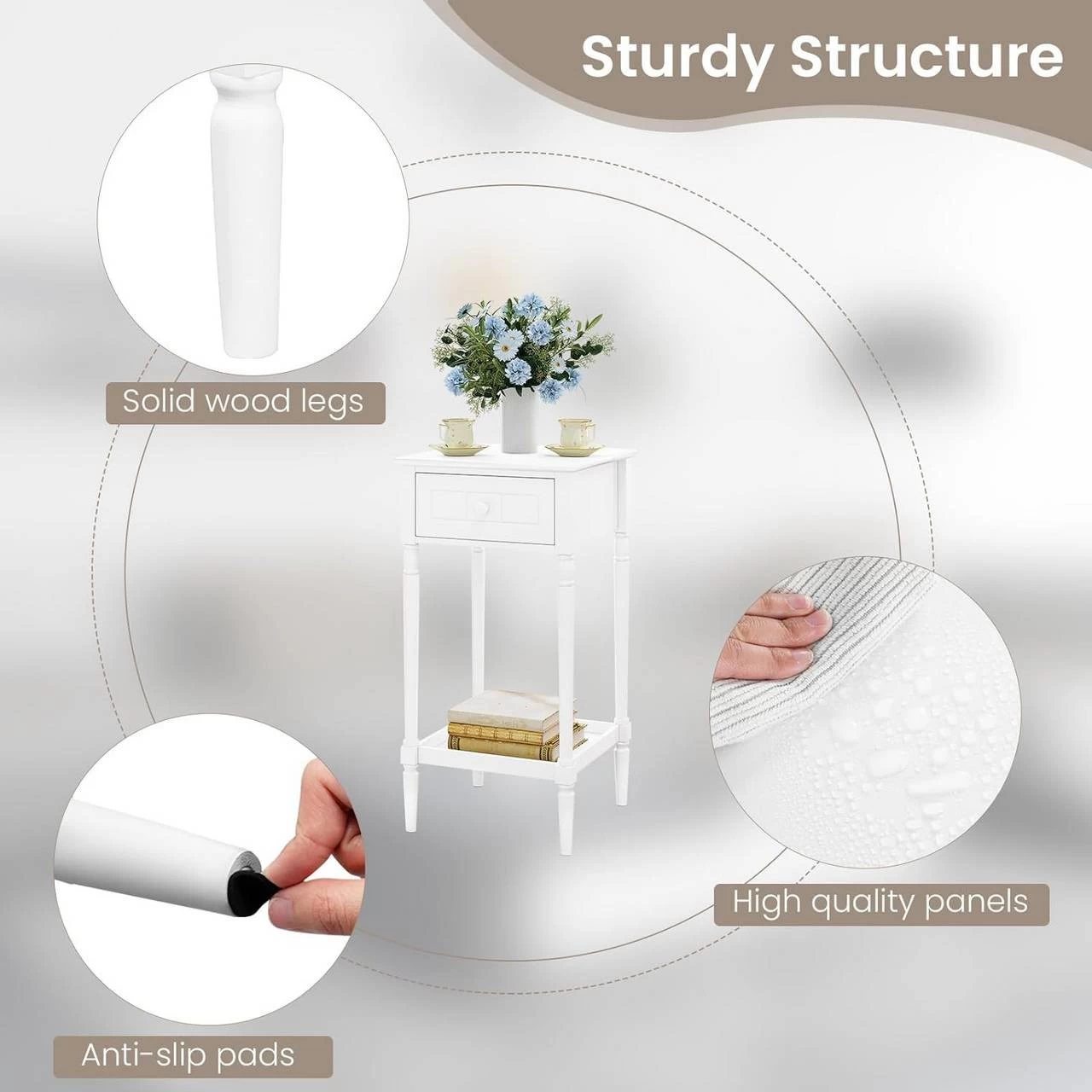- MEHR EBENEN: Eine Tischplatte (35×35 cm), eine Schublade, eine offene Ablage bieten vielfältigen Stauraum für Ihre persönlichen Dinge, Bücher, Figuren usw. Mit 70,5 cm Höhe sind sie griffbereit, der Anti-Kipp-Gurt sorgt für eine sichere Nutzung.
