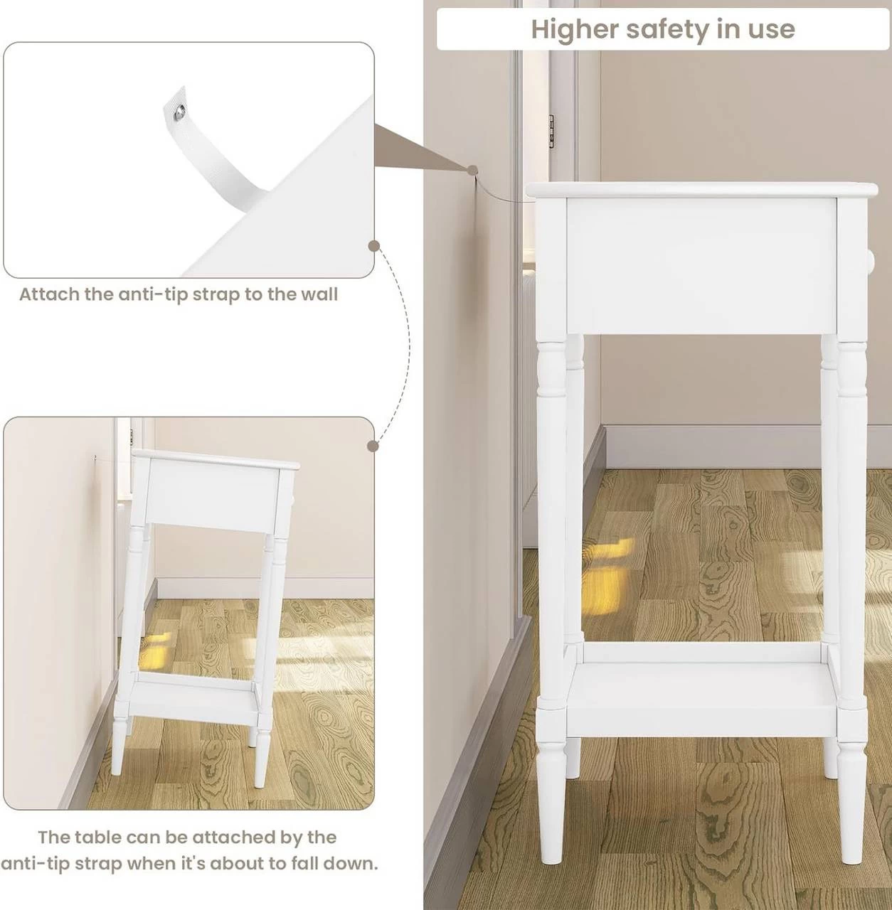 Anti-Kipp-Gurt: Befestigen Sie das Nachtschränkchen für Schlafzimmer mit dem Kippschutzgurt an der Wand, um es sicherer zu machen.