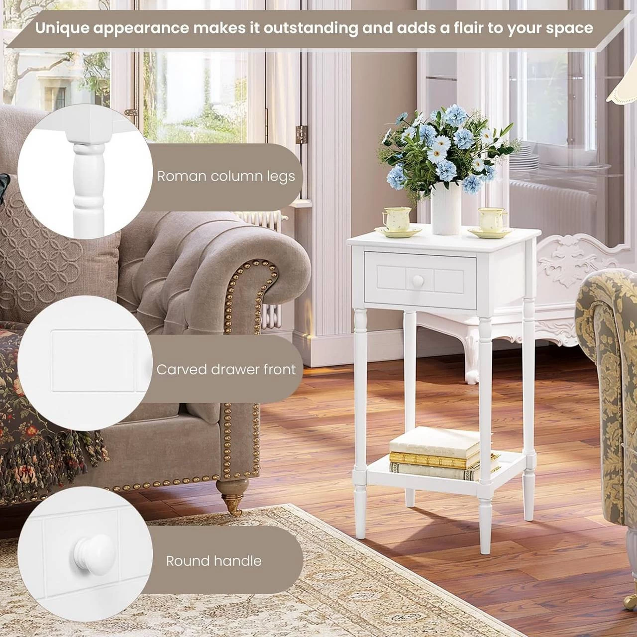 - ELEGANTES DESIGN: Das geschnitzte Muster auf der Schublade und die römischen Säulenbeine tragen wesentlich zur Schönheit des Nachtschrankes bei, sodass er zu jedem modernen Wohnstil passt und Ihrem Zimmer Glamour verleiht.