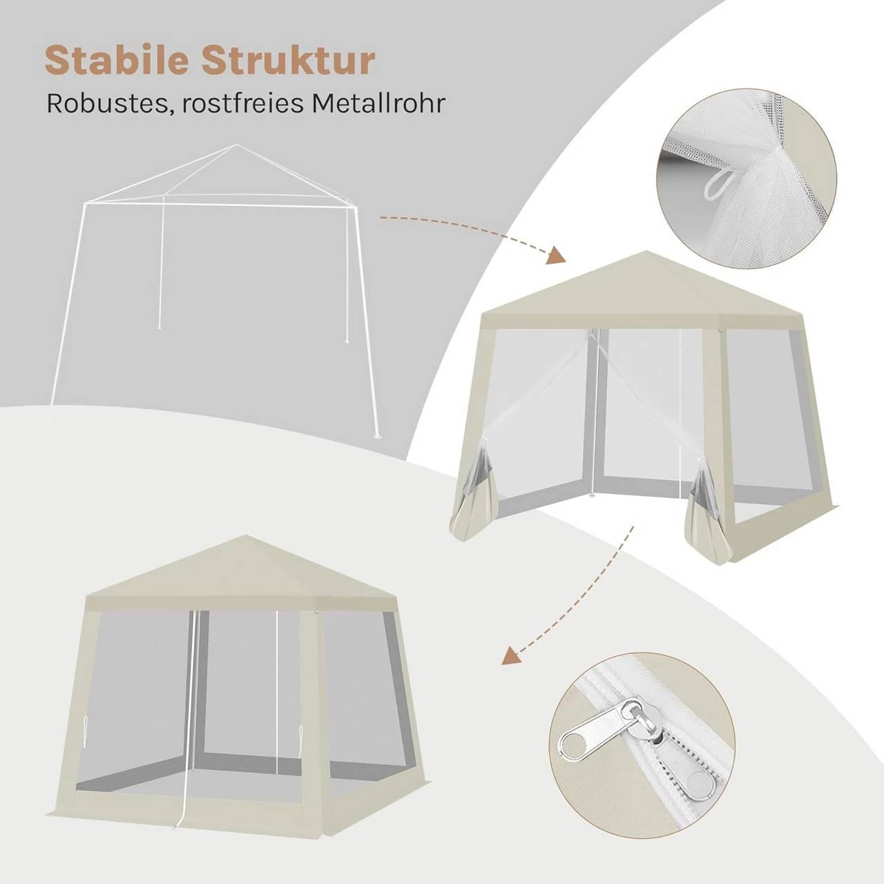Metallrahmen: Die Metallrohre sind robust und rostfrei und sorgen für einen stabilen Rahmen.