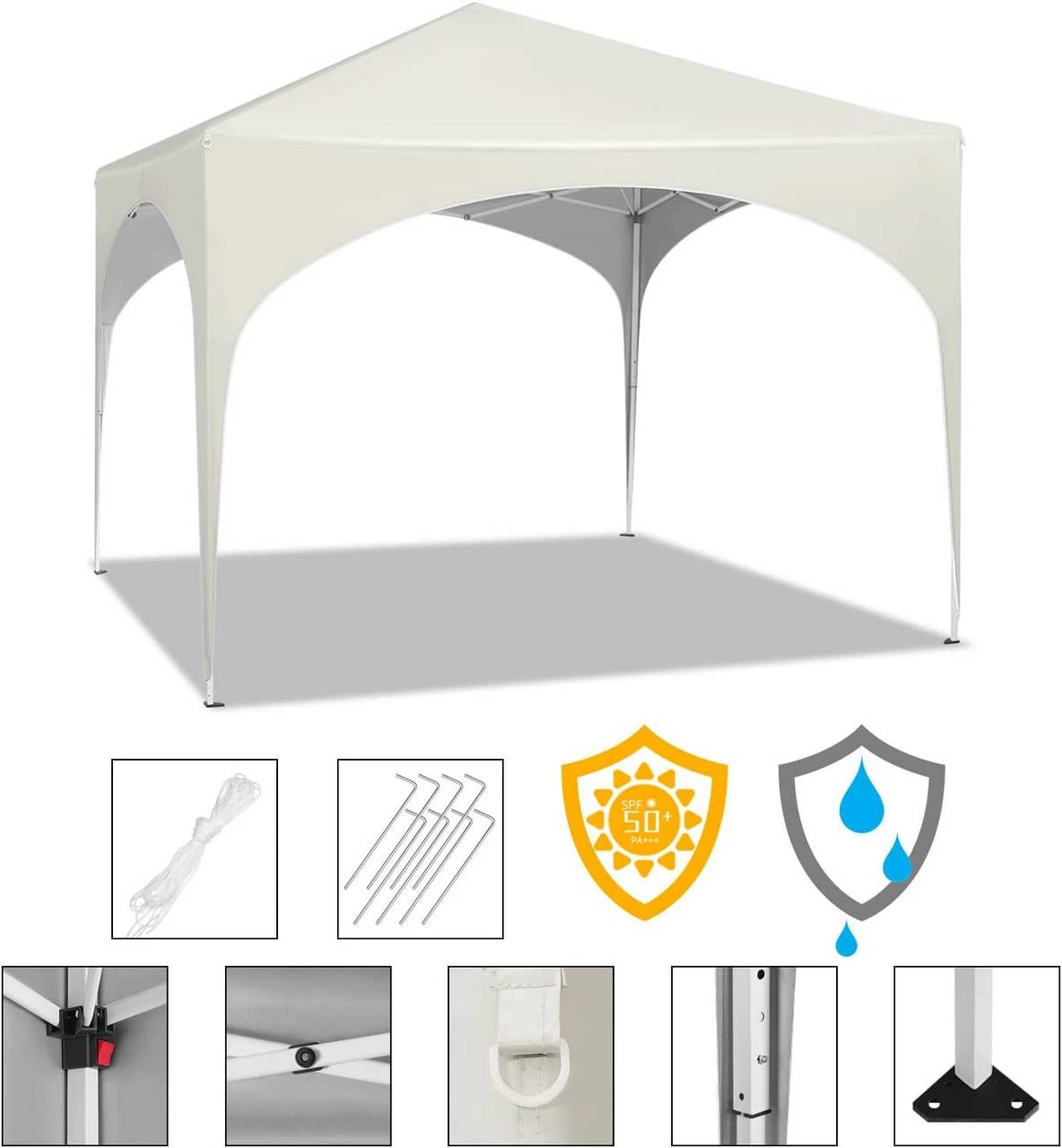 - Robuste Struktur: Dieser Pavillon wird von einem beschichteten Metallrahmen getragen und ist somit robust und rostfrei. Verwenden Sie die mitgelieferten Anti-Rutsch-Spikes und Seile, um die Stabilität zu verbessern