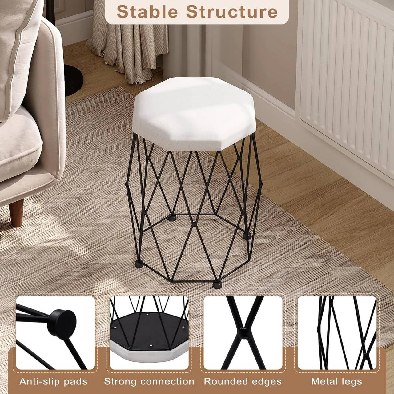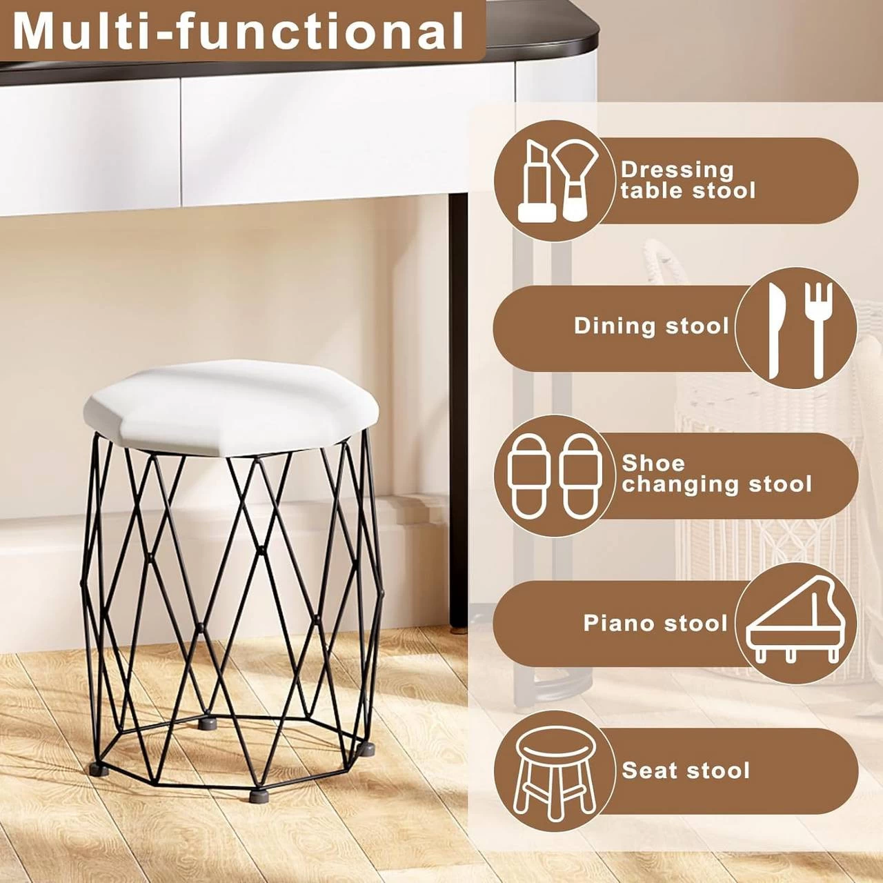 Multifunktional: Der Hocker ist ideal als Schminktischhocker, Schuhwechselhocker, Wohnzimmer-Fußhocker, Schlafzimmerhocker oder zusätzlicher Sitzplatz im Esszimmer.