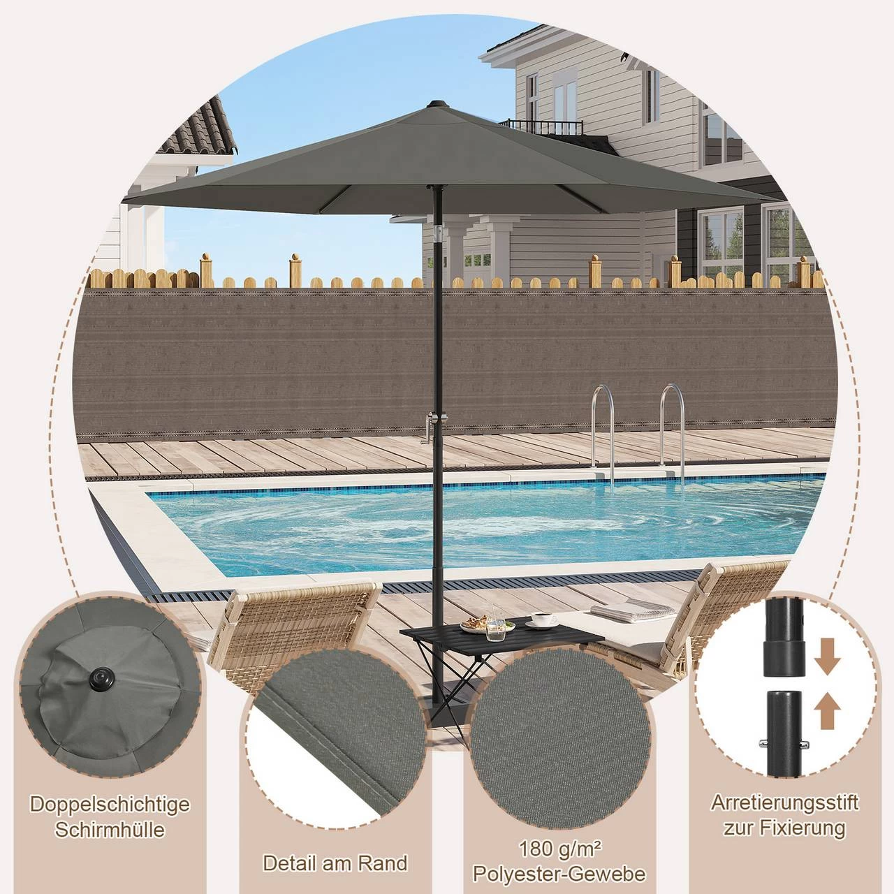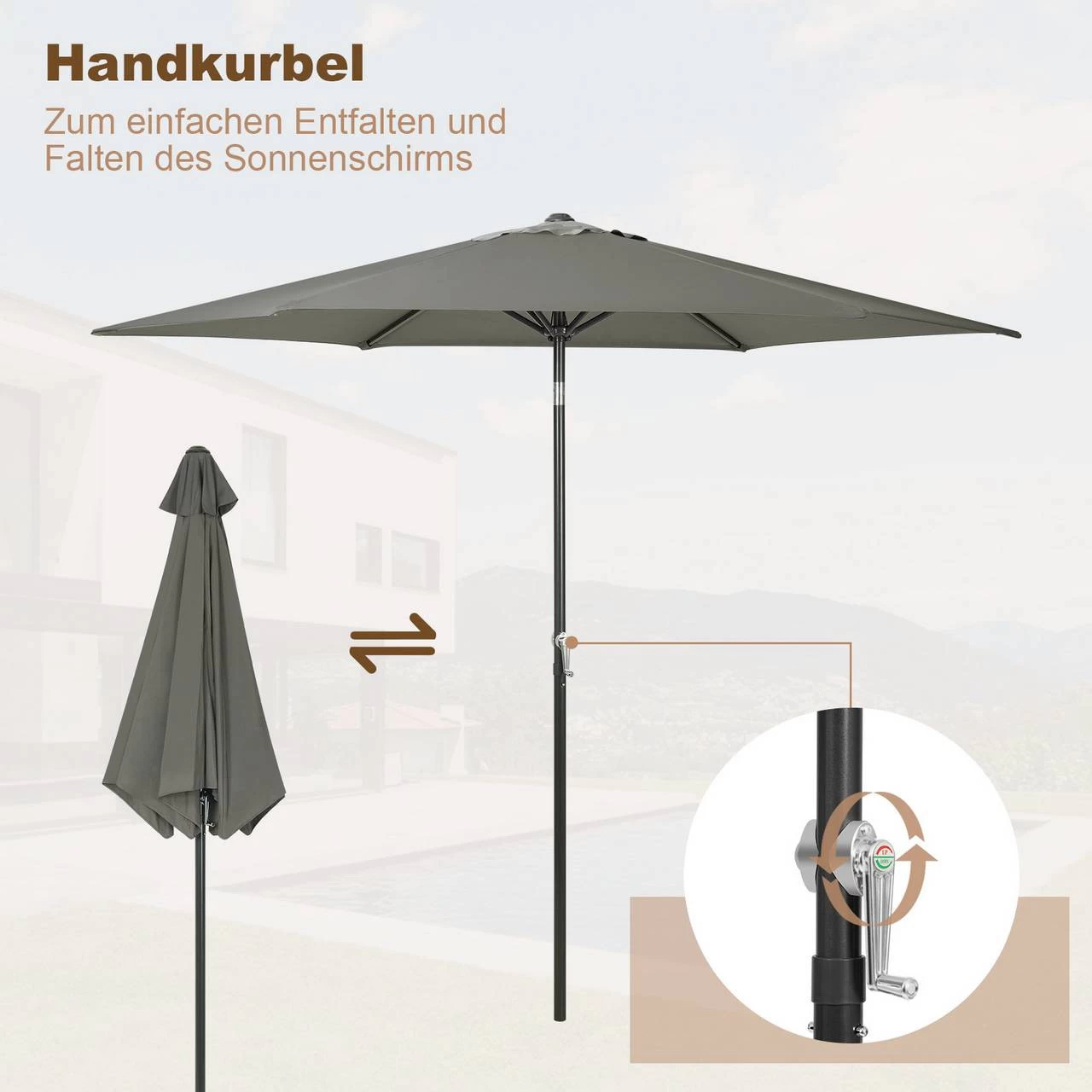 - SONNENSCHUTZ: Gefertigt aus 180 g/m² Polyestergewebe mit Beschichtung, ist der Sonnenschirm UV-beständig und wasserdicht, zusammen mit dem großen Durchmesser von 240/270/300 cm können Sie bei Aktivitäten im Freien wirksam vor Regen und Sonne geschützt werden.