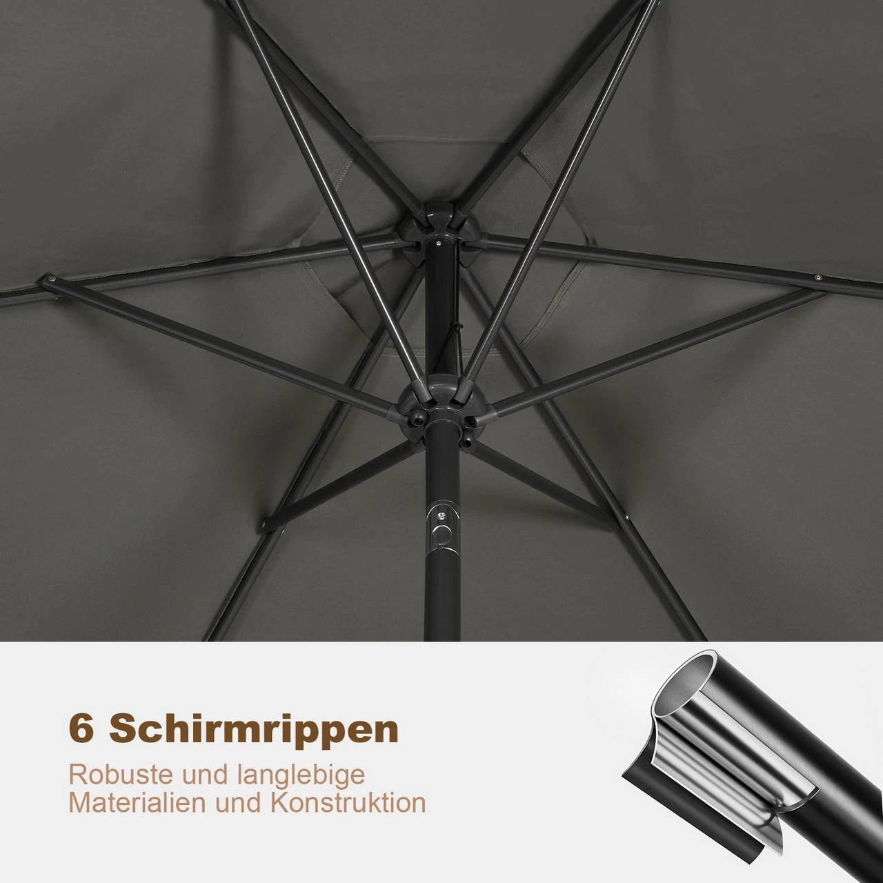 - ROBUSTE UND LANGLEBIGE KONSTRUKTION: Der Gartenschirm hat 6 Metallrippen und 2 rostfreie Metallstangen für eine robuste und langlebige Konstruktion. Die Belüftungsöffnung an der Oberseite reduziert die Windeinwirkung auf den Schirm, was die Stabilität weiter erhöht.