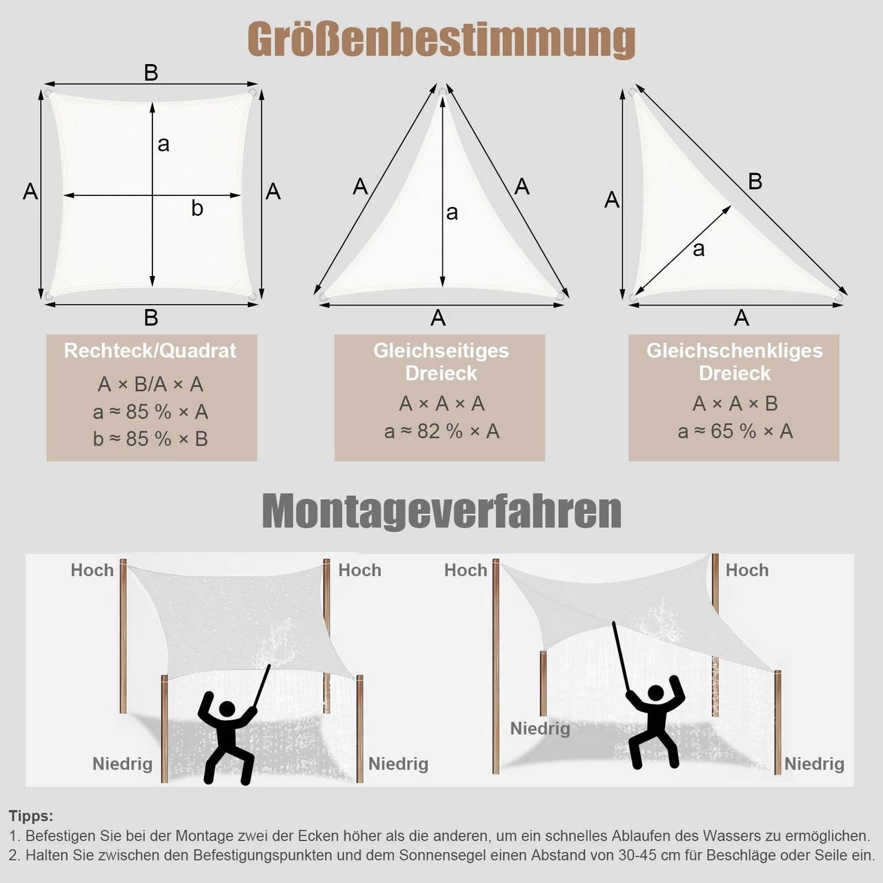 - FÜR VIELE SZENARIEN GEEIGNET: Das Sonnensegel mit Seilen ist in 4 Formen erhältlich. Es eignet sich für viele Anwendungsbereiche, wie z. B.: Garten, Hof, Innenhof, Terrasse, Balkon, Schwimmbecken, Pergola, Carport, Parkplatz, Sportplatz, Kinderspielplatz, Campingplatz und viele andere Orte im Freien.