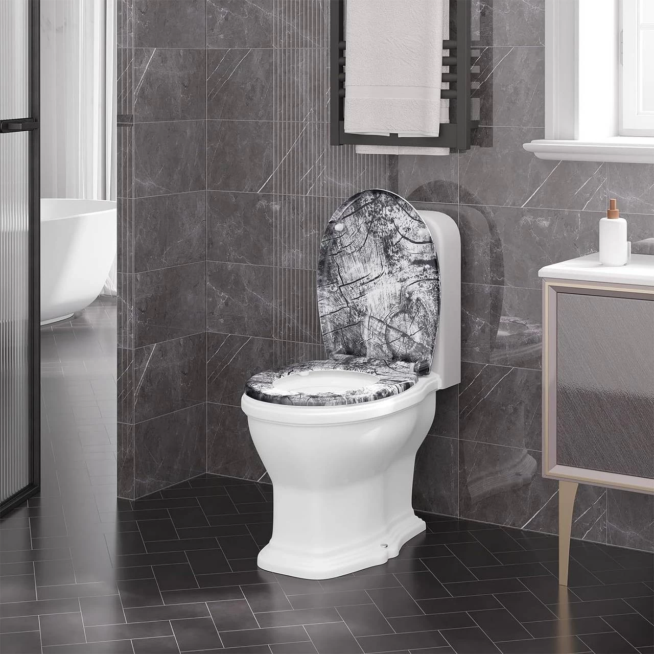 WOLTU Toilettendeckel, WC Sitz Mit Absenkautomatik, Klobrille, O-Form, Holzmuster