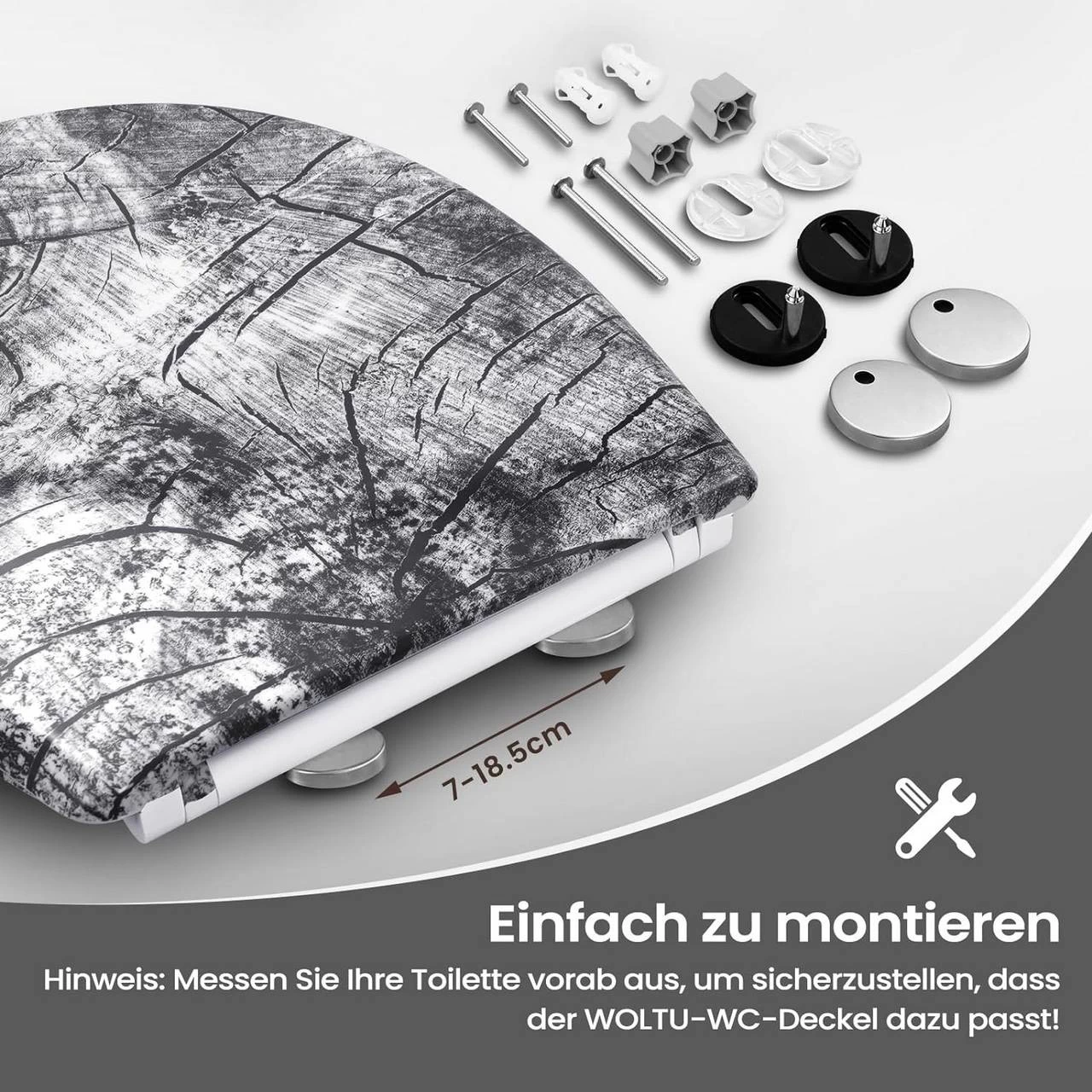 WOLTU Toilettendeckel, WC Sitz Mit Absenkautomatik, Klobrille, O-Form, Holzmuster – Bild 6