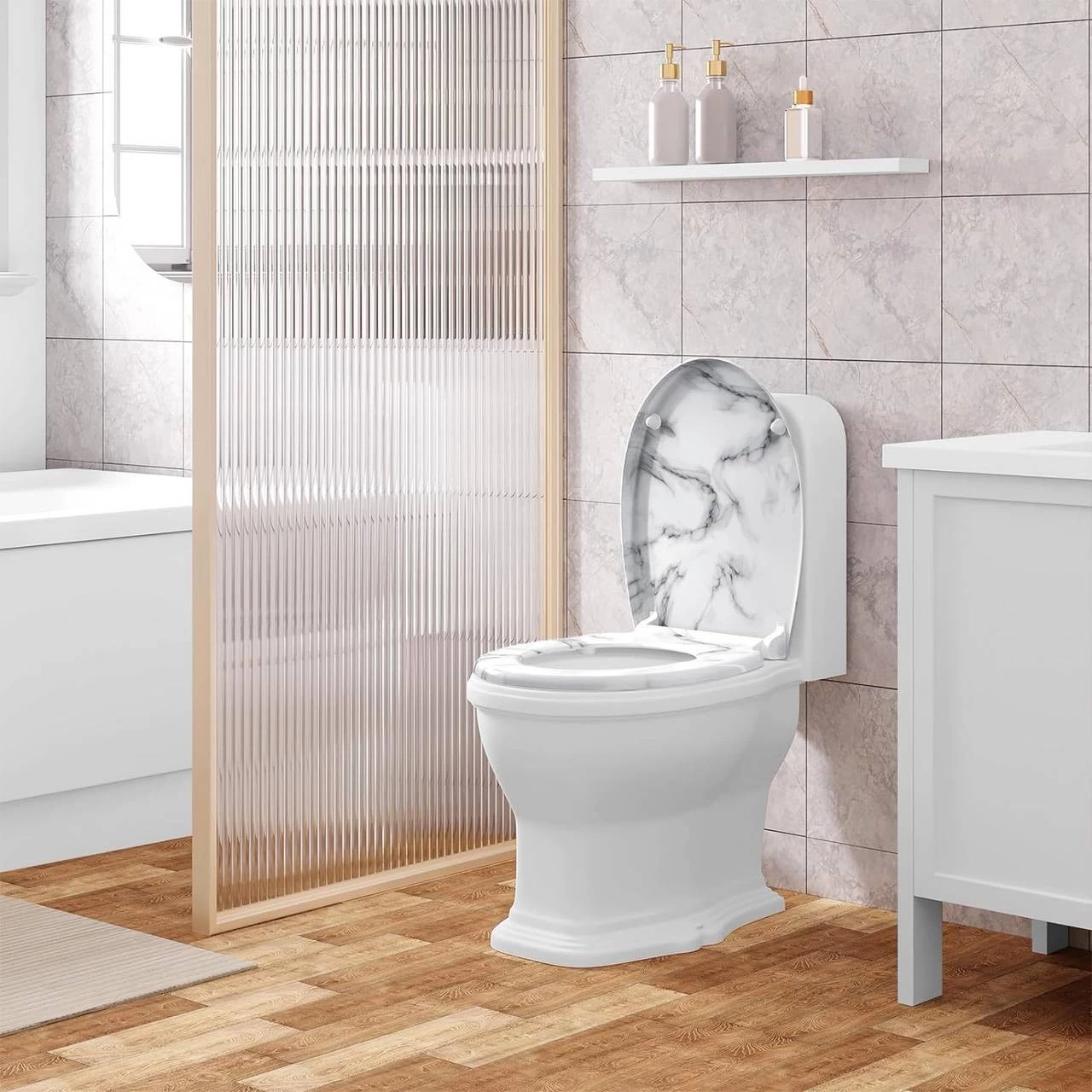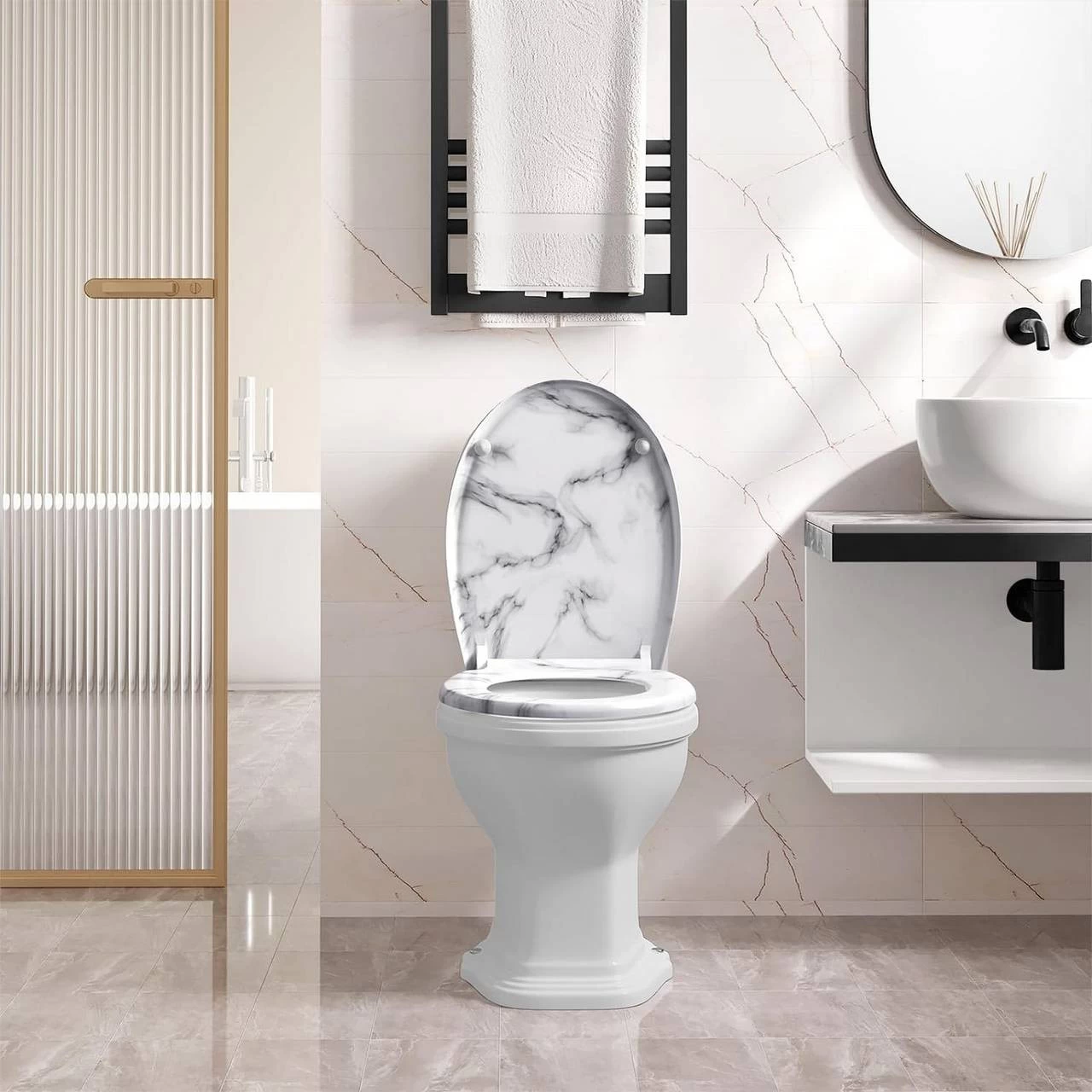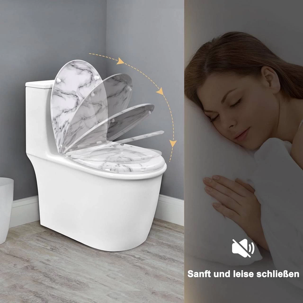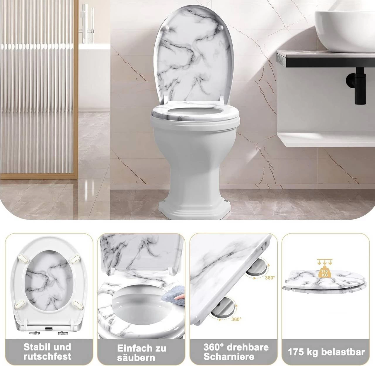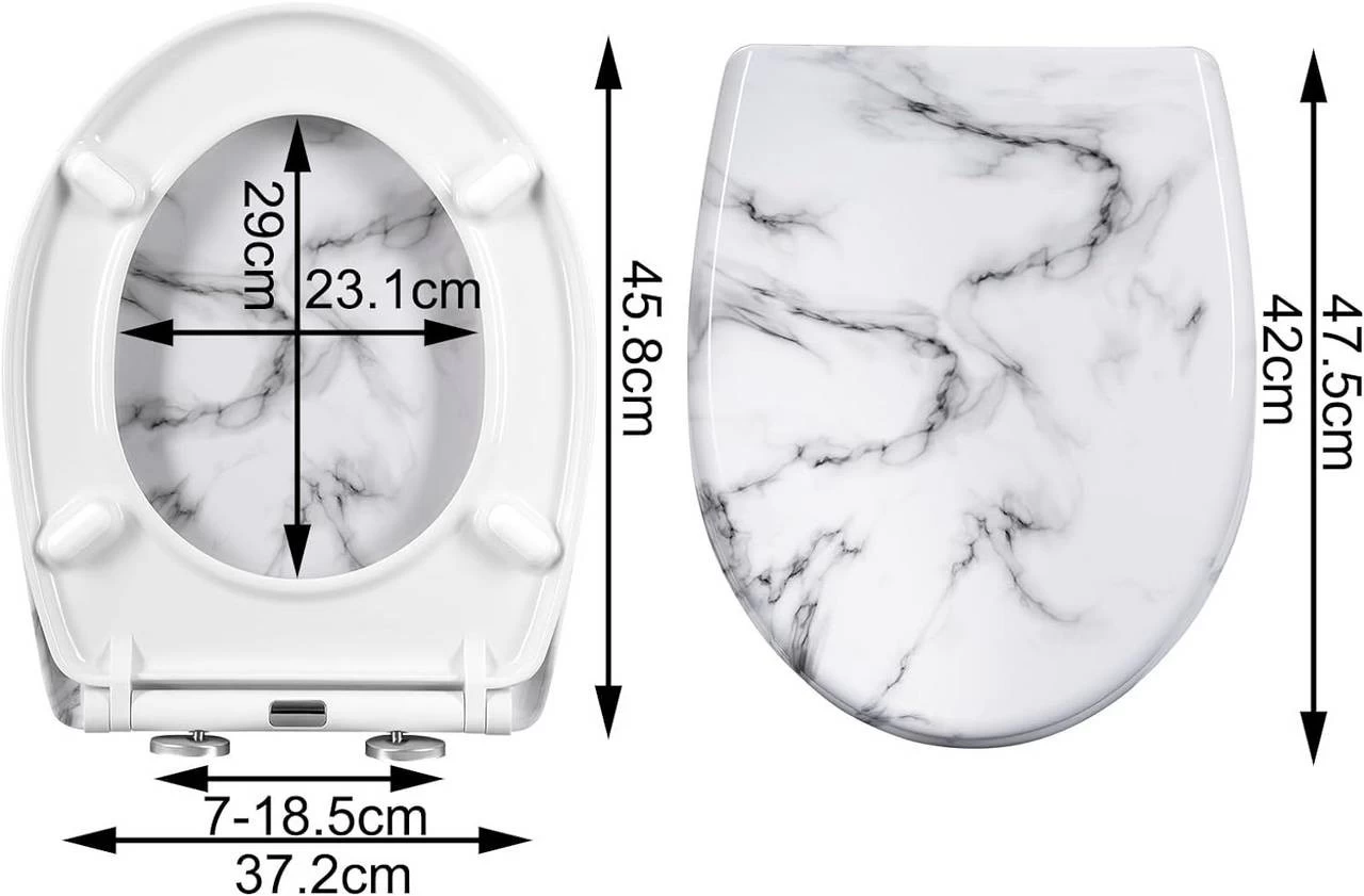 WOLTU Toilettendeckel, WC Sitz Mit Absenkautomatik, Klobrille, O-Form, Weißes Marmormuster