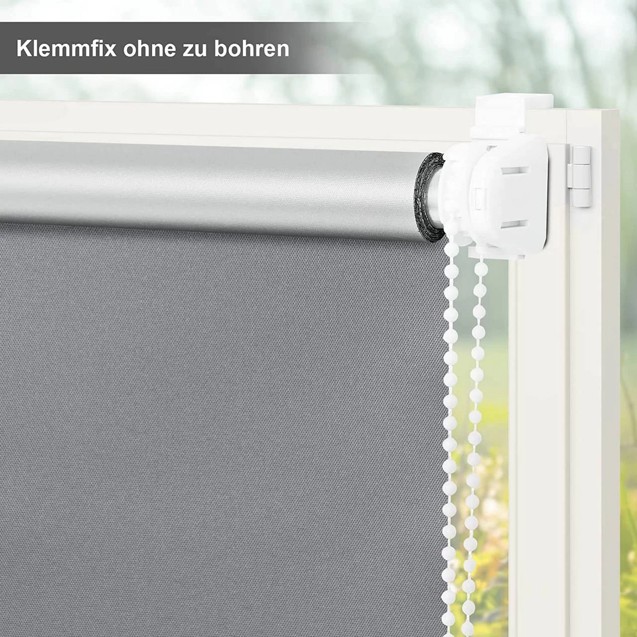 - VERDUNKELND: Das Verdunkelungsrollo ohne Bohren kann den Raum gut abdunkeln, effektiven Schutz gegen Sonne, UV-Strahlen und für Privatsphäre bieten. Dank des leicht verstellbaren Kettenzugs können Sie das Rollo in jeder beliebiger Höhe fixieren und dadurch den Lichteinfall ganz einfach anpassen. Der Kettenzug kann je nach Bedarf links oder rechts angebracht werden