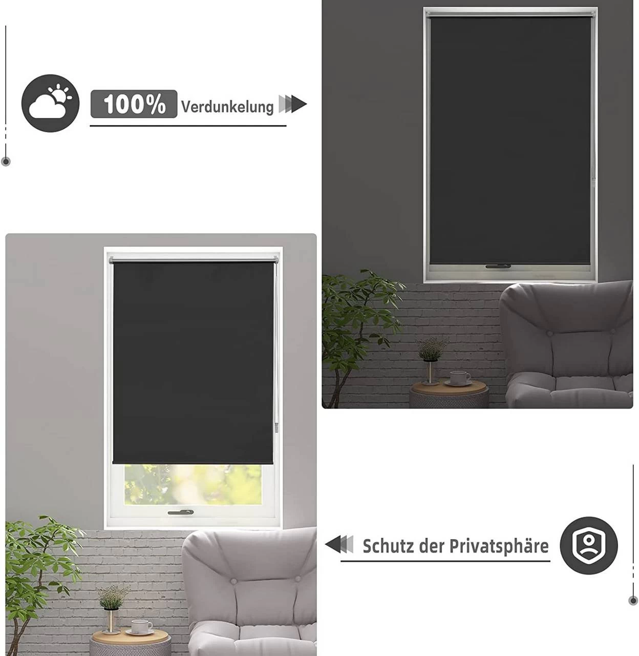 - VERDUNKELND: Das Verdunkelungsrollo ohne Bohren kann den Raum gut abdunkeln, effektiven Schutz gegen Sonne, UV-Strahlen und für Privatsphäre bieten. Dank des leicht verstellbaren Kettenzugs können Sie das Rollo in jeder beliebiger Höhe fixieren und dadurch den Lichteinfall ganz einfach anpassen. Der Kettenzug kann je nach Bedarf links oder rechts angebracht werden