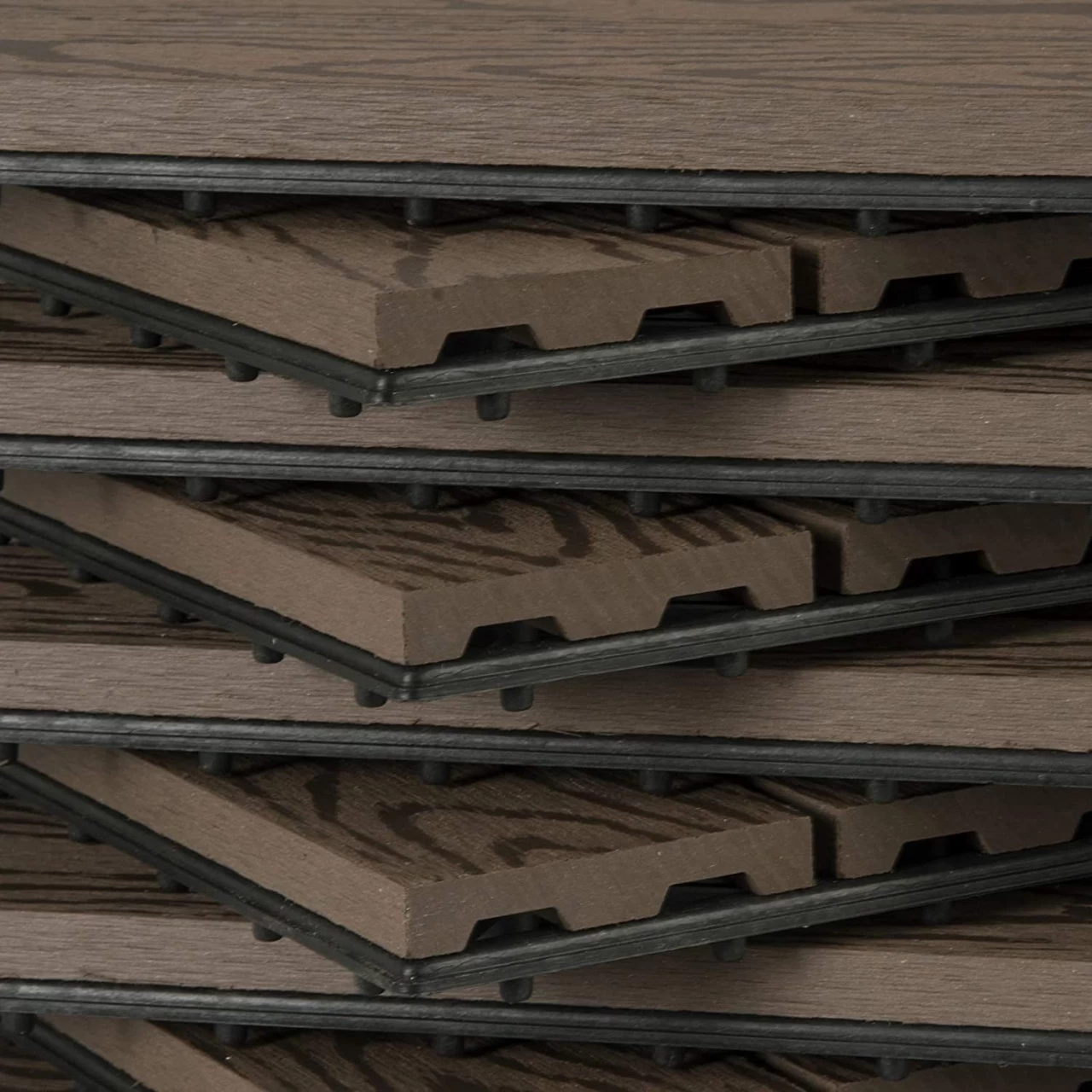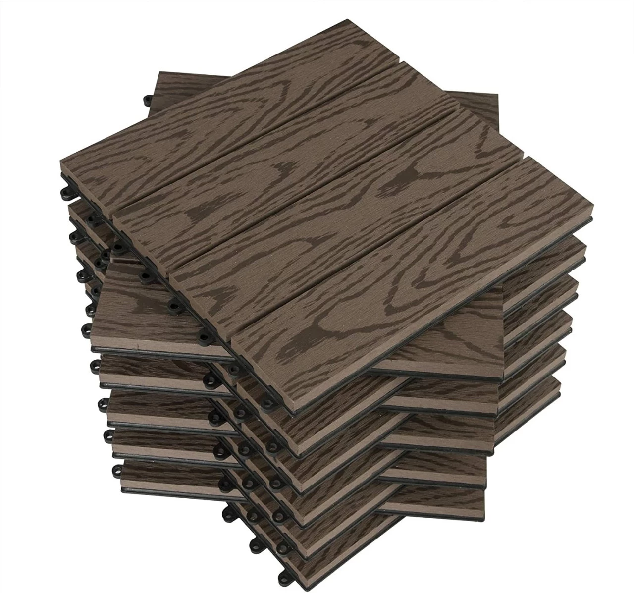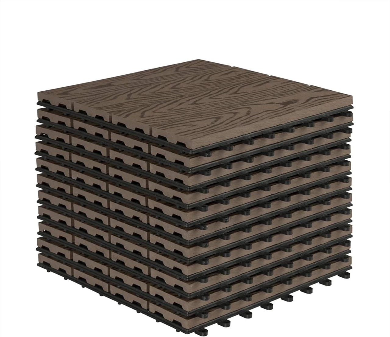 - Mehre Kombination: jede in 30x30cm und 22 Stücke, Die Fliesen können mit anderen Farben der Fliesen kombiniert werden. Außerdem können die WPC Terrassenfliesen mit Stein-Klickfliesen oder Rasenfließen kombiniert werden