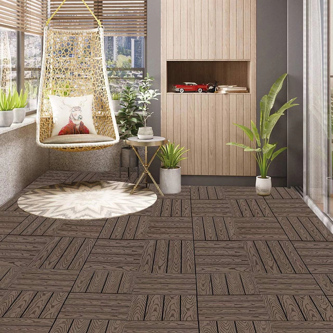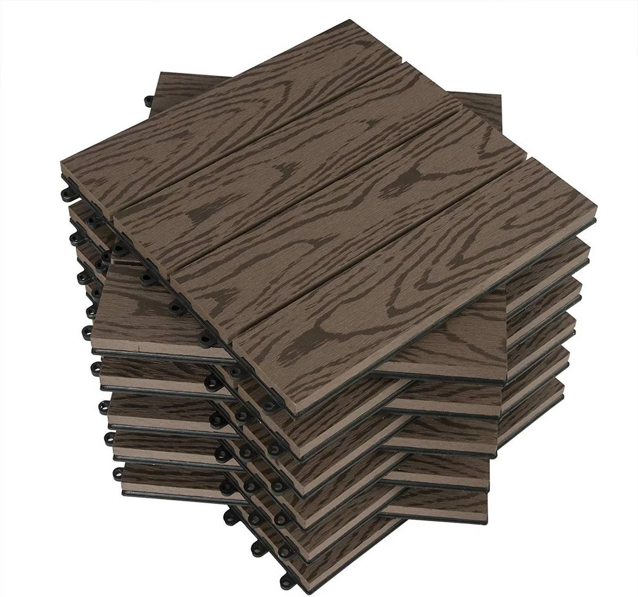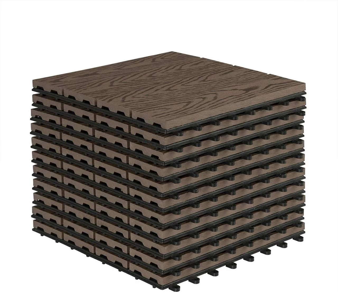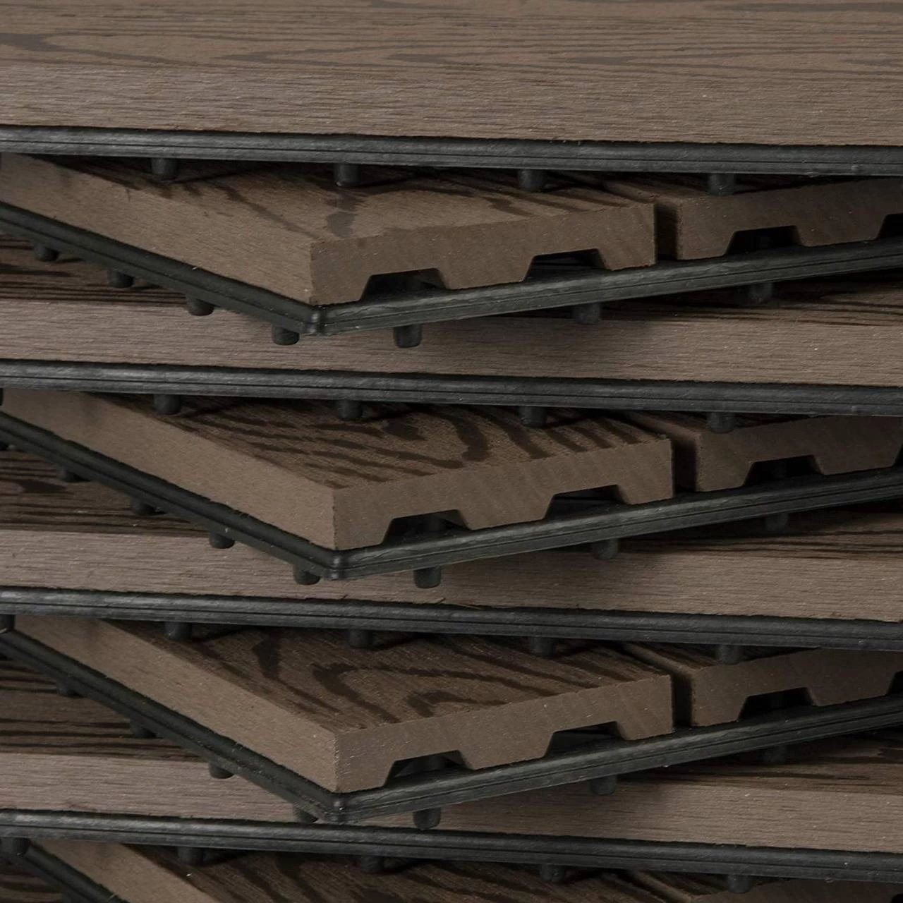 - Mehre Kombination: jede in 30x30cm und 11 Stücke, Die Fliesen können mit anderen Farben der Fliesen kombiniert werden. Außerdem können die WPC Terrassenfliesen mit Stein-Klickfliesen oder Rasenfließen kombiniert werden